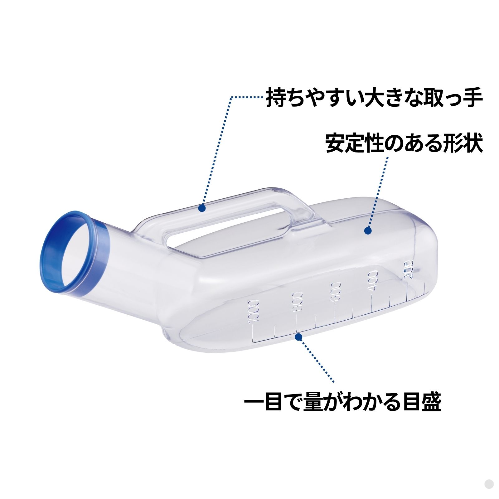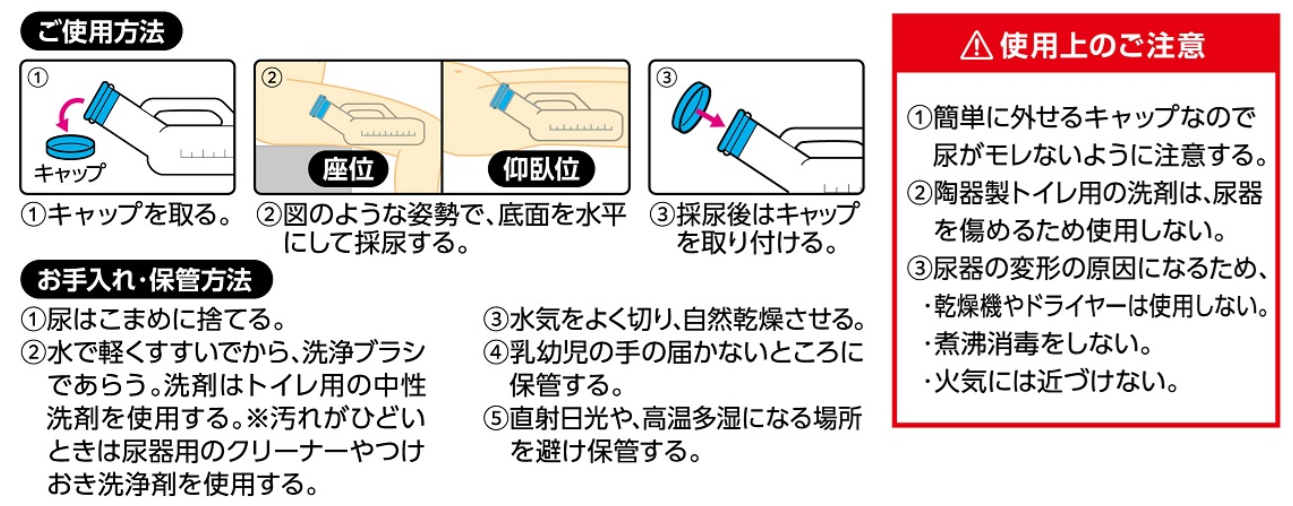 尿の状態が確認できる男性用透明尿器。