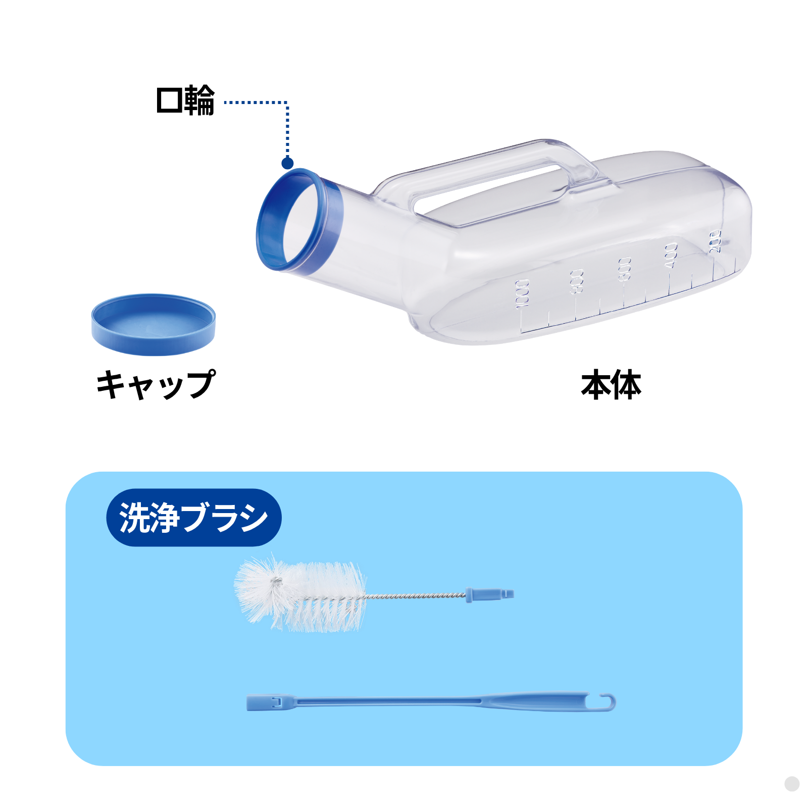 ご使用後は尿をためずに、よく洗ってください。 まずは水洗い、中性洗剤、尿器クリーナーなどをご使用ください。それでも汚れが落ちない場合は市販のつけおき洗剤、クリーナーをご使用ください。