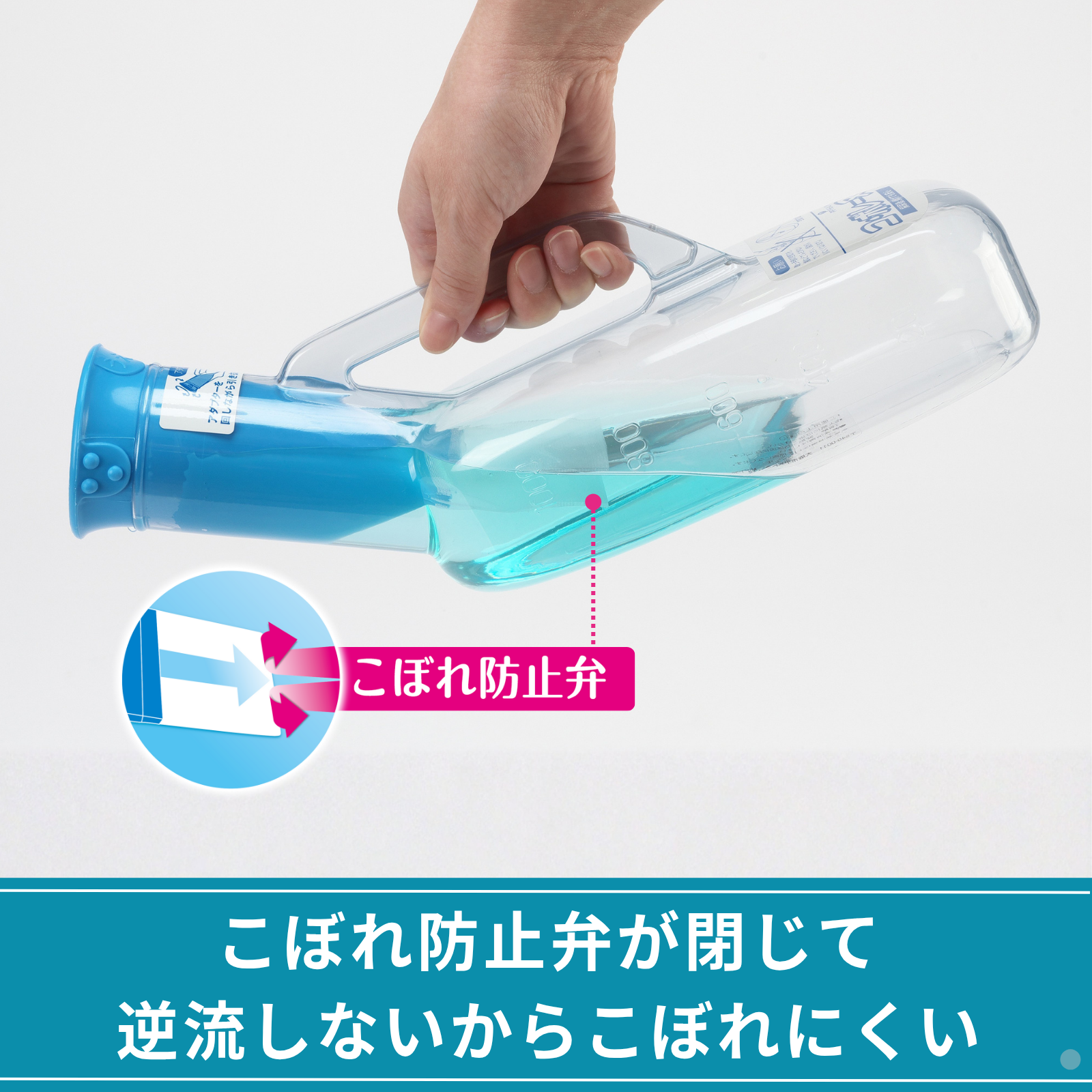 こぼれ防止弁が閉じて逆流しないからこぼれにくい